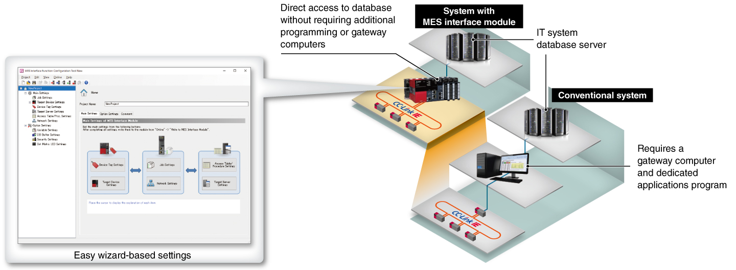- Mô-đun giao diện MES truy cập máy chủ cơ sở dữ liệu như một client, loại bỏ việc thăm dò (polling) không cần thiết và giảm tải cho mạng, bộ điều khiển lập trình và hệ thống CNTT.