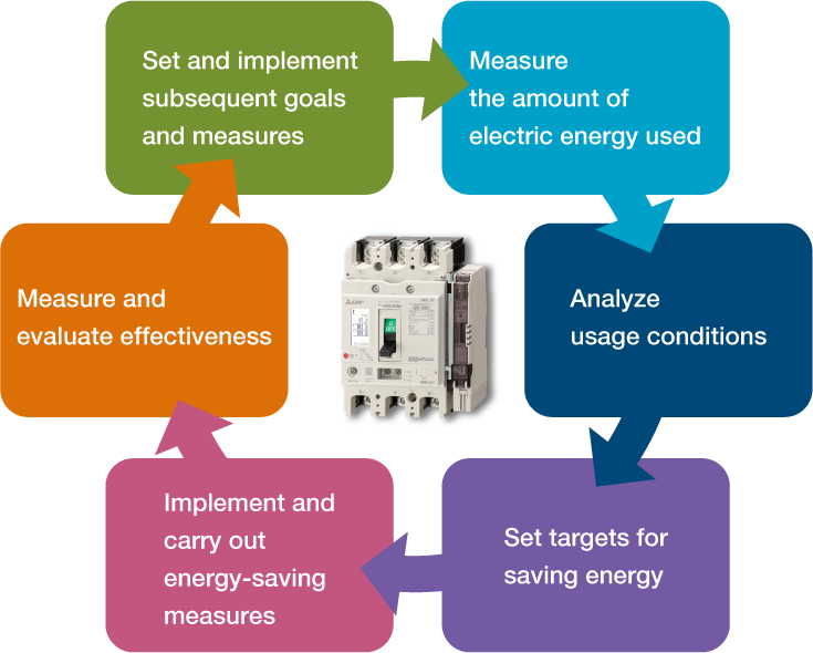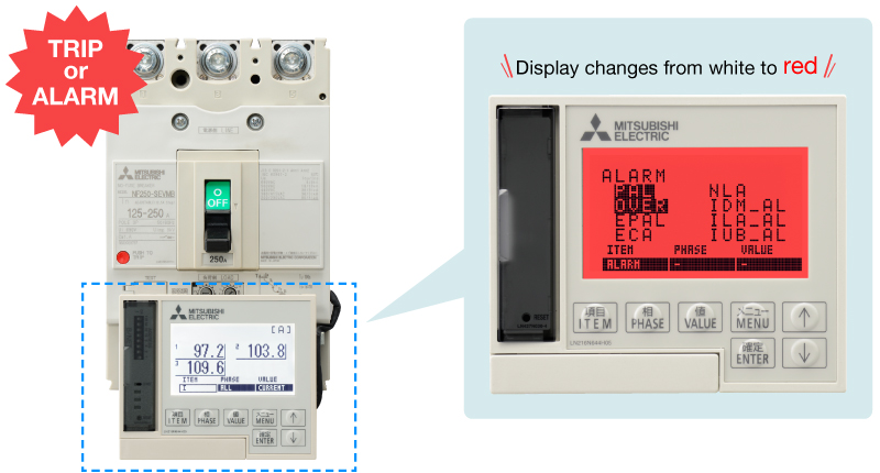 Dòng tải, điện áp đường dây, công suất, năng lượng điện, dòng hài, dòng rò và hệ số công suất đi qua máy cắt điện được đo và hiển thị, cho phép quản lý năng lượng chi tiết nhằm cải thiện tiết kiệm năng lượng.