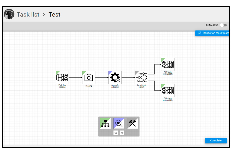 Dễ dàng thiết lập các nhiệm vụ theo định dạng sơ đồ quy trình. Các cài đặt từ việc tạo mô hình đến việc tạo màn hình giám sát có thể được thực hiện bằng một công cụ duy nhất.