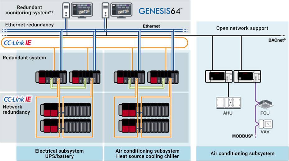 Dòng sản phẩm MELSEC iQ-R/iQ-F cũng hỗ trợ các mạng mở của BACnet..và MODBUS.Việc cho phép quản lý tích hợp các thiết bị và thiết bị của hệ thống điều hòa không khí khác nhau, Dòng sản phẩm MELSEC iQ-R/iQ-F cung cấp hoạt động hệ thống tối ưu.