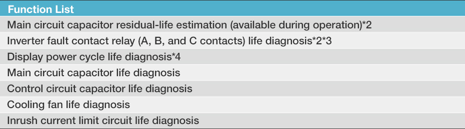 Thời gian kiểm tra chẩn đoán tình trạng thiết bị đã được mở rộng so với dòng FR-E700. Chức năng chẩn đoán nâng cao này đảm bảo hoạt động đáng tin cậy của hệ thống. Tuổi thọ thiết kế của quạt làm mát và tụ điện đã được kéo dài lên đến 10 năm...